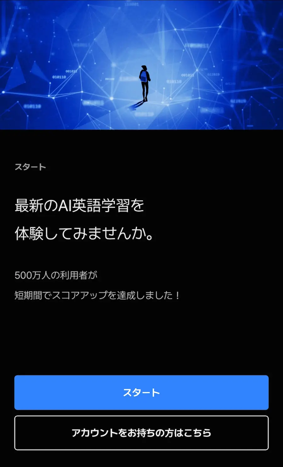 Santaのアカウントがない方は「スタート」、ある方は「アカウントをお持ちの方はこちら」をタップします。