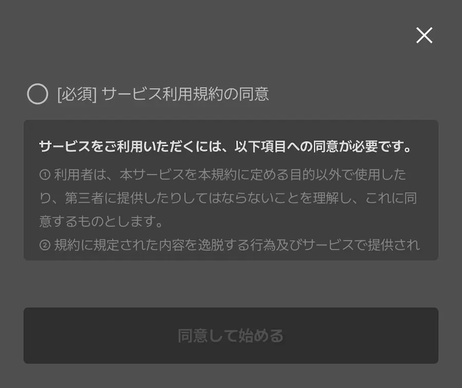 サービス利用規約に同意して始める