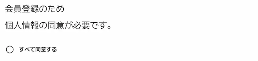 個人情報の同意画面で、「すべて同意する」の横にチェックを入れます。